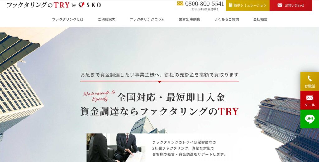 | ファクタリングのtry | 10万円~5000万円 | 3%~ | 最短2時間 | 可 |